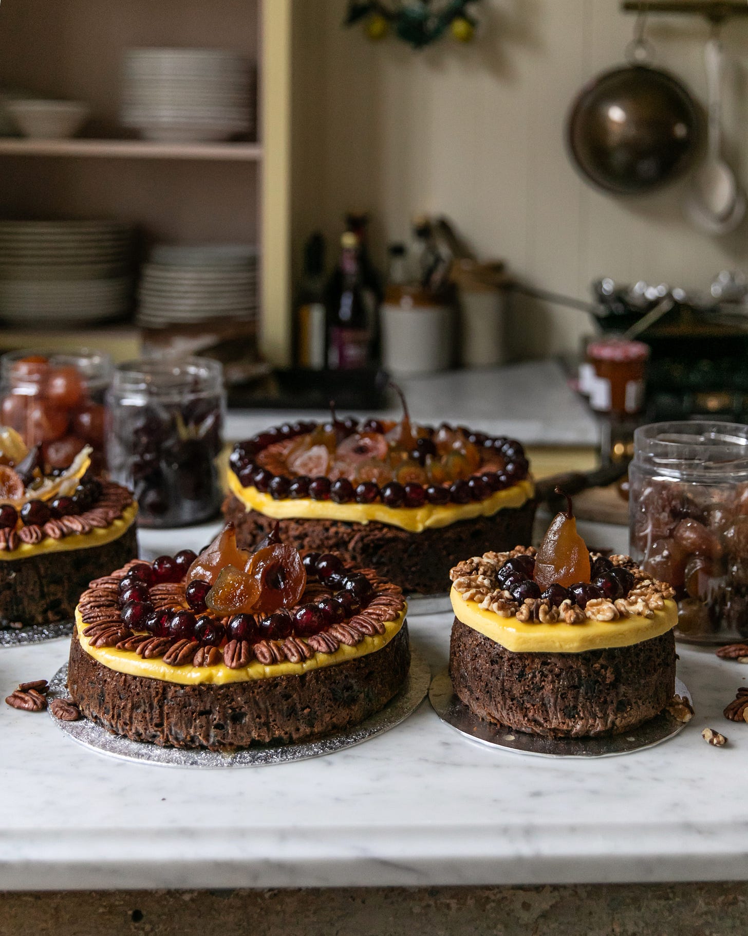I’ve started the annual epic Christmas Cake bake-athon, albeit slightly scaled down this year from my usual thirty odd cakes. This year I’m aiming for twelve. As I sit and type this right now, I have cakes baking in the oven, so the whole house smells like sugar and spice and Christmas - which is pretty much as good as it gets. I’ve had to break the cake-baking process up into timed chunks this year, in order to squeeze it all in because between the book launch and my pop-up shop I’ve been busier than usual. But actually (so far, at least) it seems to be panning out quite well; and I wonder if, moving forward, the multi-stage Christmas cake baking might be the way to go. Friday = steeped dried fruits in copious quantities of brandy, then greased and lined the baking tins (the cake tin bit always takes infinitely longer than you think it’s going to, so great to get a head start on it); Sunday = creamed the butter, sugar and treacle together and weighed out all the dry ingredients so then now poised and ready to go (again, everything takes longer than you think); very early this morning (Monday) = mixed the eggs, flour and brandy-laden fruits to make the cake batter, then got cakes in the oven and baking asap, because they do take pretty much forever (a low temp and slowly bake is one of the secrets to a moist and good fruitcake); tonight and tomorrow morning (that’s the plan anyway) = decorate cakes.